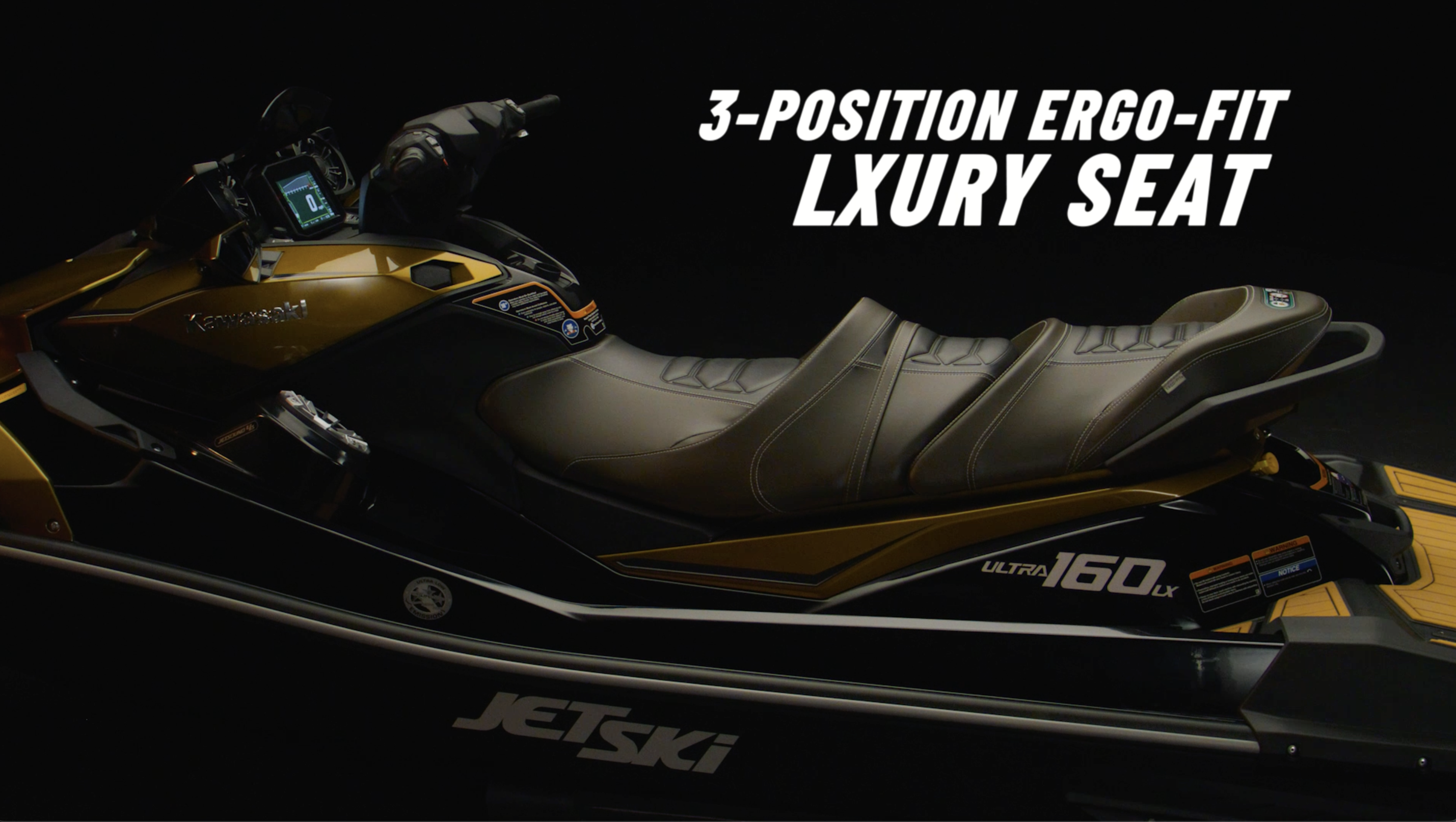 ULTRA 160 LXには調整可能なERGO-FIT Lxuryシートを装備しています。また、カワサキの4スピーカー内蔵パーソナルウォータークラフト用オーディオシステム「JETSOUNDS 4s」が水上の冒険を演出します。